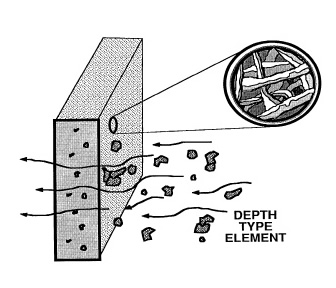 一般为可透性材料,内部具有大量的半通孔及贯通孔。它的过滤作用发生在整个厚度上。一部分污物粒子被阻挡在近介质上游的表面,一些较小的粒子进入过滤介质内部,在收缩、膨胀、水力效应等作用下吸附在孔壁上,或因桥架、流体方向改变引起沉积得到滤除。因此,深度型过滤介质的纳污容量较大,过滤效果较表面型过滤介质为好,寿命也较长,但清洗效果就相对差些。